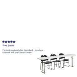 Flash Furniture 8′ Plastic Folding Training Table Set, White (RB18961)
