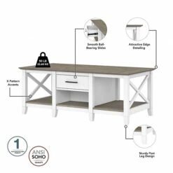 Bush Furniture Key West 47″ X 24″ Coffee Table With Storage, Pure White Oak (KWT148WT-03)