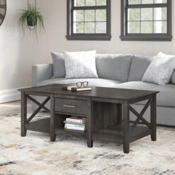 Bush Furniture Key West 47″ X 24″ Coffee Table, Dark Gray Hickory (KWT148GH-03)