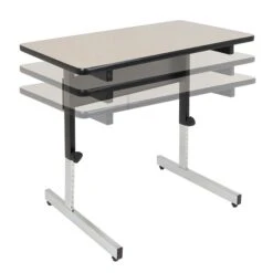 Studio Designs 35.5″W Project Center Corner Table, Pink Frame And Spatter Gray Top (55125)