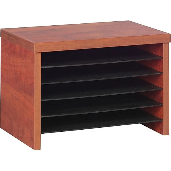 Store special order requests or private labels in this file organizer that sits underneath your counter to make the most of your space. Featuring six compartments for files and paperwork, this piece keeps what you need within your reach but out of your customers’ line of sight. The medium cherry finish of this storage piece adds a sophisticated touch to your setting.