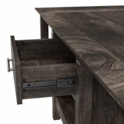 - Center of the coffee table includes a box drawer and lower cubby to store TV remotes, reading materials, and more