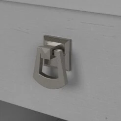 - Mission-inspired styling includes tapered legs, curved base rails, and decorative accents