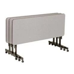 - Casters allow easy movement from storage to setup, then lock to hold table in place