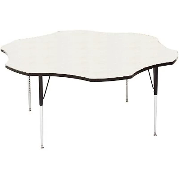 Flower-shaped 60×60″ activity table features extra long, extra-heavy solid steel leg braces for additional strength.