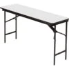 Correll Gray Granite Rectangular Folding Table features foldable steel legs for easy storage. It is suitable for commercial use such as computer training and seminars.