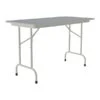 Store this folding table simply by releasing the lock. Fold the legs, and store the table upright in a closet or basement without taking up valuable floor space. Slide multiple tables in the back of your commercial vehicle for easy transportation to your next event.