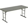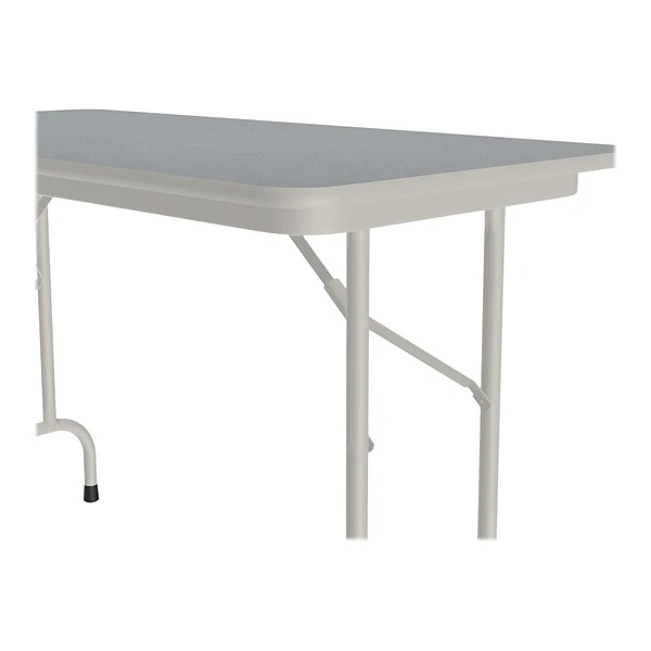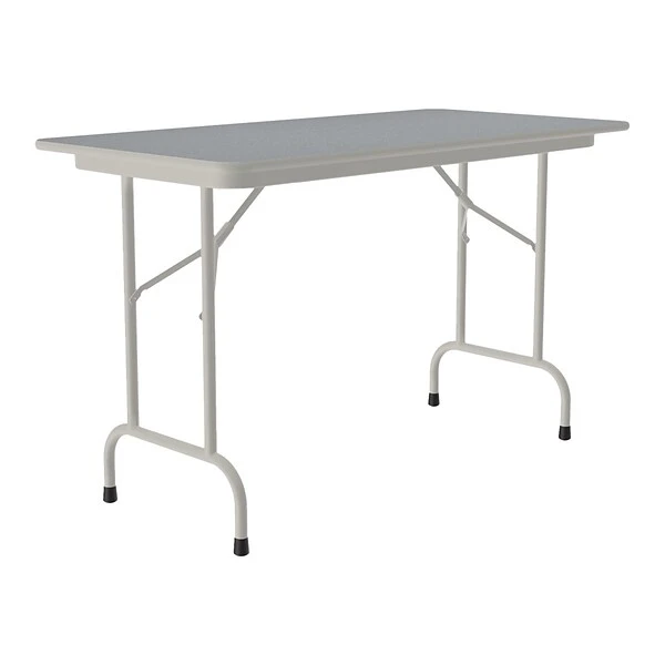 The Correll folding table is durable for heavy-duty home, office, school, church, food service, and commercial use. Its thermal-fused laminate top is water-, stain-, and dent-resistant. The table folds for portability and storage space.