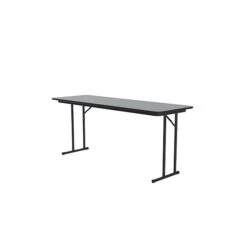 This offset leg folding table by Correll is constructed with the heaviest use in mind. Great for heavy-duty use in schools, universities, offices, hotels, and conference areas. The table’s thermally fused laminate top is water-, stain-, and dent-resistant. Folds for portability and storage space. Features a knife-lock mechanism attached to the back leg, making underneath the table completely open, and leaving nothing to interfere with the user’s legroom. Made in the USA.