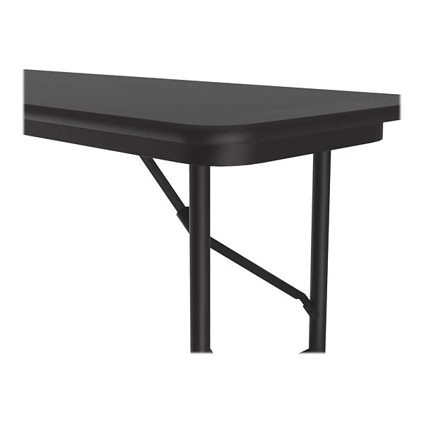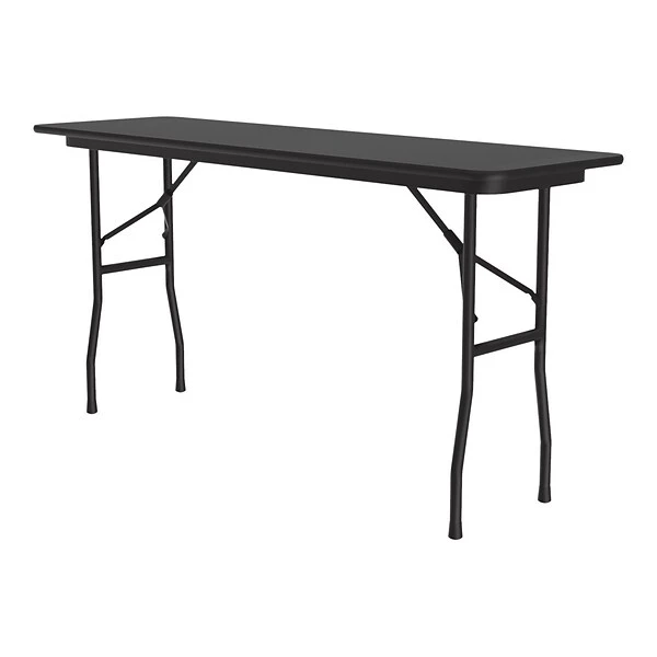 The Correll folding table is durable for heavy-duty home, office, school, church, food service, and commercial use. Its thermal-fused laminate top is water-, stain-, and dent-resistant. The table folds for portability and storage space.