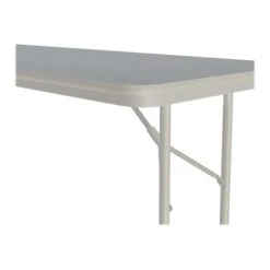 The Correll folding table is durable for heavy-duty home, office, school, church, food service, and commercial use. Its thermal-fused laminate top is water-, stain-, and dent-resistant. The table folds for portability and storage space.