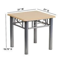 This durable laminate table will make a great addition to your reception or office to hold magazines and decorative items. Not only does its ample surface area serve as a convenient space for holding customers’ belongings, it’s also great for displaying magazines, newspapers, and brochures. Plus, its mahogany laminate top lends a warm, professional look that is sure to impress your guests. This end table’s silver metal frame with decorative sides provides a sturdy foundation while adding a sophisticated touch to any room. The legs are also capped with plastic glides, helping to keep your floor surfaces in pristine condition. Create a chic, comfortable sitting area in your lobby with this end table!