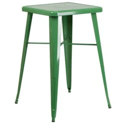 Complete your dining room, restaurant or patio with this chic bar table and chair set. This colorful set adds a retro-modern look to your home or eatery. The table top features an engraved designer print, a stabilizing cross brace and protective rubber floor glides. The space-saving backless stool features a square seat with a drain hole. This three-piece table set is designed for indoor and outdoor settings. For longevity, care should be taken to protect this set from long periods of wet weather. The possibilities are endless for using this table in both commercial and residential spaces.