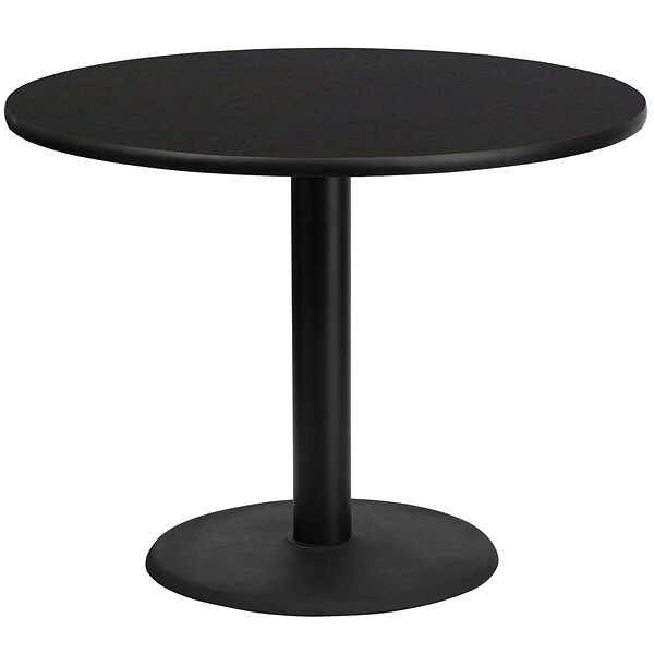 Complete your restaurant, break room or cafeteria with this table top and base configuration. This set is designed for commercial use to withstand the daily rigors in the hospitality industry. This set will also make a great option for your home as a dining table or in the rec room. The reversible black or mahogany top allows you to choose your color of choice and then affix to the base. Surface is heat, scratch and moisture resistant. Use a mild detergent and water, dry clean to keep your tables spotless. Whether you are just starting your business or upgrading your furniture this table set will complete the look.