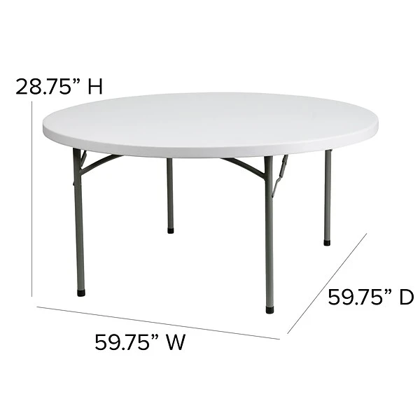 The 59.75-inch Flash Furniture Folding Table is a smart choice if you want to expand your work station in a compact and stylish way. It features a plastic tabletop with smooth white finish that makes it easy to clean and resistant to stains. This round plastic folding table complements most decor themes and fits well in smaller spaces. Available as a single table, it comes with a durable tabletop for long-term usage.