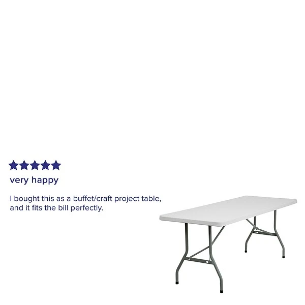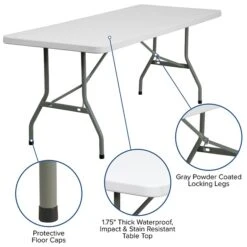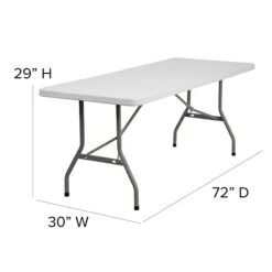 Extend your tabletop space with the 72-inch Flash Furniture Commercial Table as it features comfortably big desktop space. It features a plastic tabletop with smooth granite white finish that makes it easy to clean and resistant to stains. This plastic commercial table has a rectangular design that coordinates with most decor themes and is ideal for areas with limited space. Available as a single table, it features durable tabletop with blow-molded edges to protect the top from accidental damage.