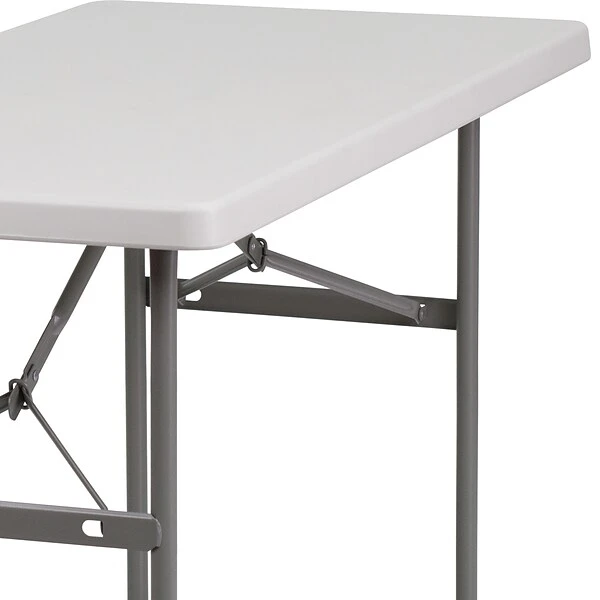 Set up this granite white plastic folding table at meetings, luncheons, and other events to provide ample space for activities. The foldable design lets you store this table away without taking up too much room. This Flash Furniture folding table is built with commercial-grade plastic, delivering the durability necessary to withstand the wear and tear brought on by regular use.