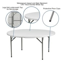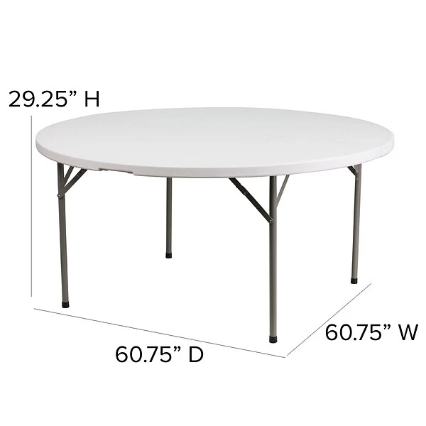 - Dimensions of round table: 29.25″H x 60.75″Dia.