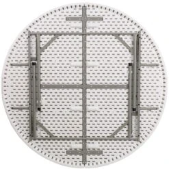 - White granite folding table is made of plastic and has metal base