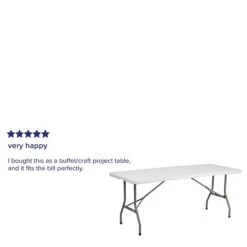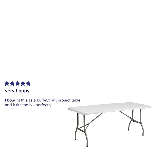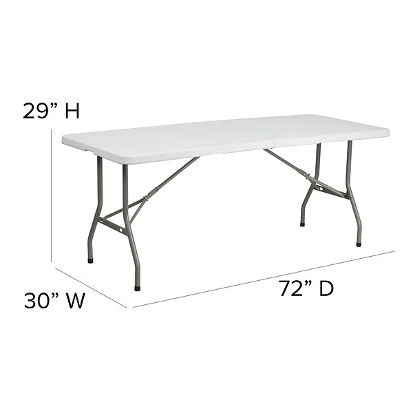 Provide seating for eight and a flat surface area with this 6-foot banquet table. With powder-coated locking legs and a 1.75-inch durable top, it can handle loads up to 330 pounds, from buffet meals to silent auction items. It compacts for easy transport and storage thanks to a bifold design and hinged legs. Take this Flash Furniture folding table to workplace events or use at home whenever you have extra guests.