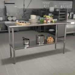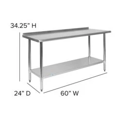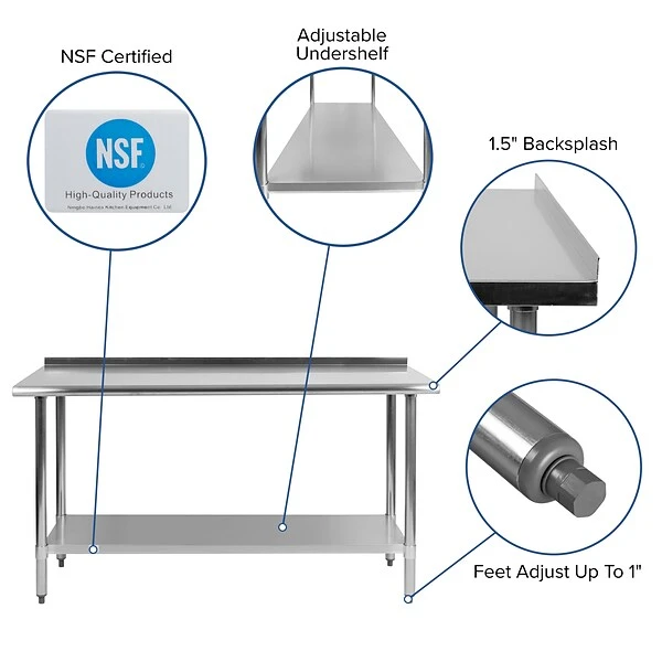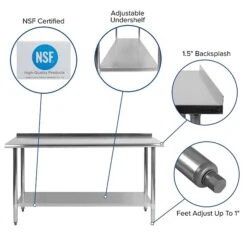 - Rust Resistant Stainless Steel Commercial Kitchen Prep Table with Adjustable Undershelf and 1.5″ Backsplash