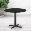 This 36″D round seated height table attracts people to lesser populated spaces like nooks, hallways and everywhere in Between. The top is covered in Shaker Cherry scratch-, spill- and stain-resistant laminate with Shaker Cherry edgeband that will look great for years to come. The cast Aluminum X-base with Textured Silver finish matches virtually any surrounding aesthetic and provides a sturdy foundation.