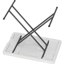 - 1-1/8″ thick, square melamine top features a wear-resistant design with vinyl, T-mold edging