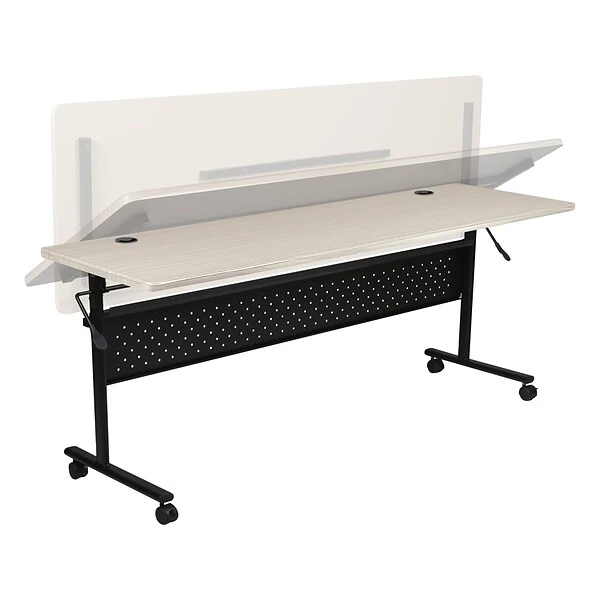 - Lightweight training table with modesty panel features a vacuum-formed PVC top in modern gray elm woodgrain finish and powder-coated black steel frame