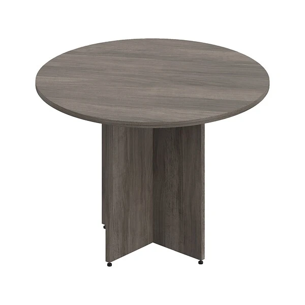 This contemporary Offices to go 42″ round desk with cross base comes in artisan gray color. Its form and laminated surface are perfect for writing or using your laptop and great for home or offices. All Superior laminate desking products are in compliance with stringent emission guidelines set out by the GREENGUARD Environmental Institute under the standards for low-emitting products and materials.