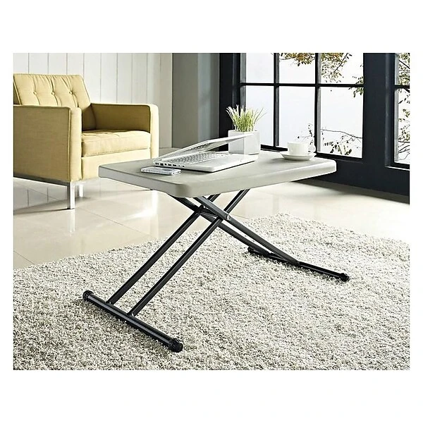 Create extra space to work, dine or entertain with this personal folding table. The compact size is ideal for single-person use, and the folding design allows for easy storage. This table boasts a height adjustment option, so you can find the right setting to match your other furnishings. A durable metal frame provides added stability, while the polyethylene tabletop stands up to frequent use. With an off-white and dark gray color scheme, this folding table offers a contemporary look.