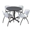 Manufactured with thermally fused melamine, Regency 48-inch mocha walnut square table is resistant to stains, burns, bumps and bruises. It features a metal Kobe X base with black powder coat finish and includes hidden glides for height adjustment.