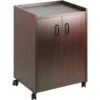 - Table top is constructed of engineered wood in cherry finish