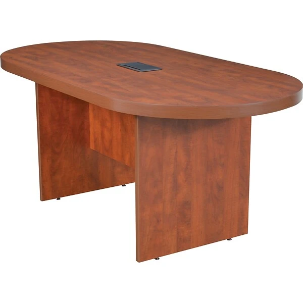 Regency Legacy racetrack conference table with power/data grommet, measures 29″ x 71″ x 35″ and has moisture resistant thermally fused melamine lamination in elegant cherry finishing.