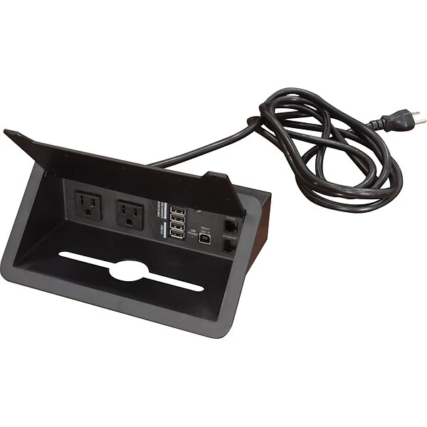 Make presentations memorable with Legacy’s Conference collection! With tables that seat from two up to 24 people, there is a table for any size team. This 71-inch racetrack table comes in an attractive Cherry finish and seats 4-8 people. Adjustable glides on the bottom of the base keep the tabletop level and are easy to adjust. A Power and Data Port makes tabletop connectivity easy. The Power/Data port includes (2) USB 2.0 ports, (2) USB charging ports, (2) AC 125V 60Hz outlets, (1) front/rear ethernet port, (1) front/rear phone port and has a black cover plate for a neat, clean look. The Legacy collection is constructed of a 1-inch thick thermal fused melamine laminate with a 3-millimeter commercial grade matching PVC edge. Laminates are scratch, stain and scald resistant. Legacy case goods are backed by a 10-year limited manufacturer’s warranty.