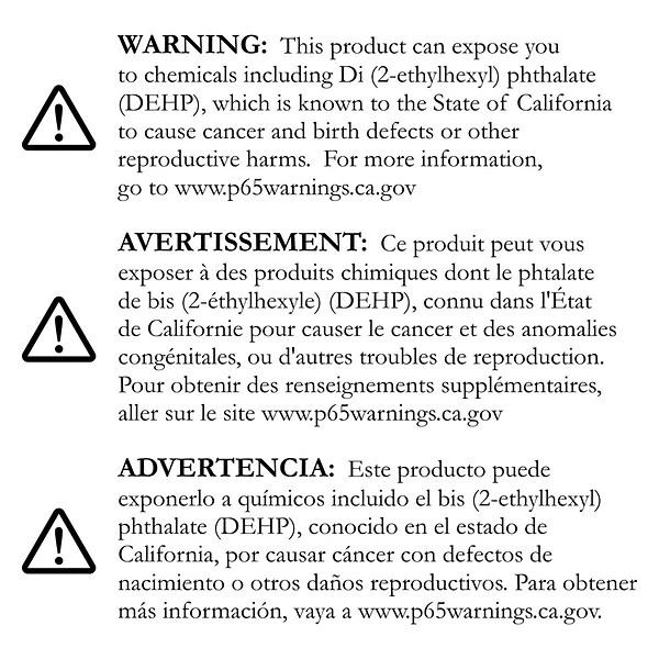 - ā WARNING: This product can expose you to chemicals including Di (2-thylhexyl) phthalate (DEHP), which is known to the State of California to cause cancer and birth defects or other reproductive harms. For more information, go to www.p65warnings.ca.gov