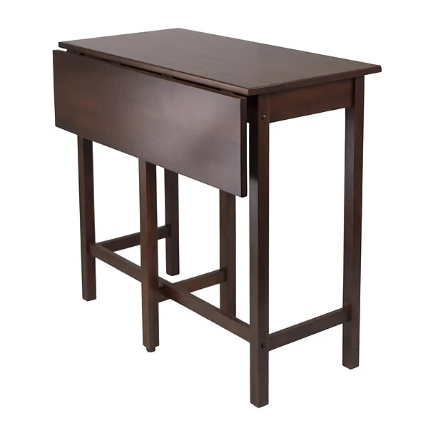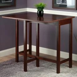 Winsome Lynnwood high table is constructed from sturdy solid wood and has rich antique walnut finish.High table with expandable and foldable drop leaf is space saving while giving a stylish look to your home.