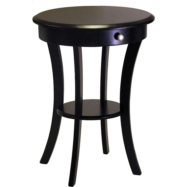 Winsome Sasha 20” round accent table is smooth and constructed from durable solid wood.Table in black finish suits any style of room and comes with a drawer for storage.